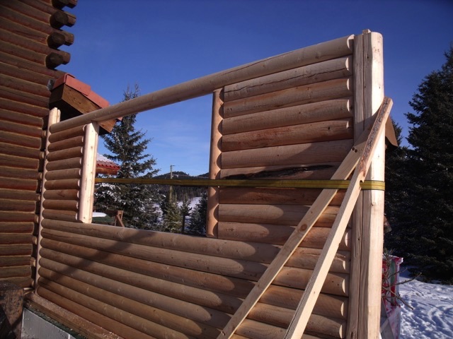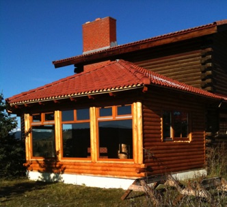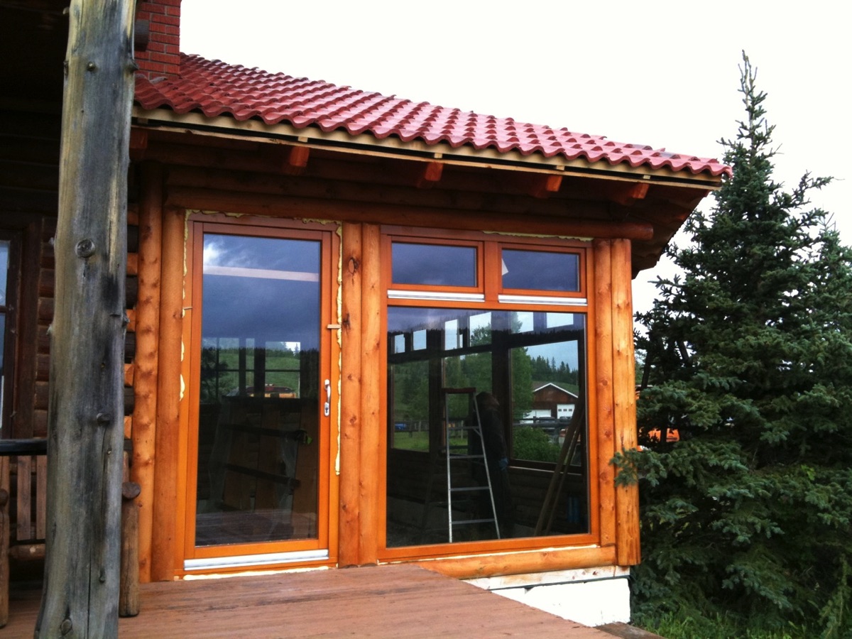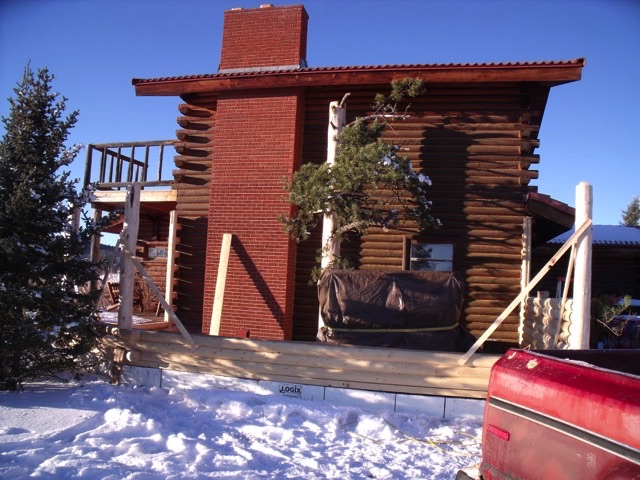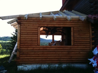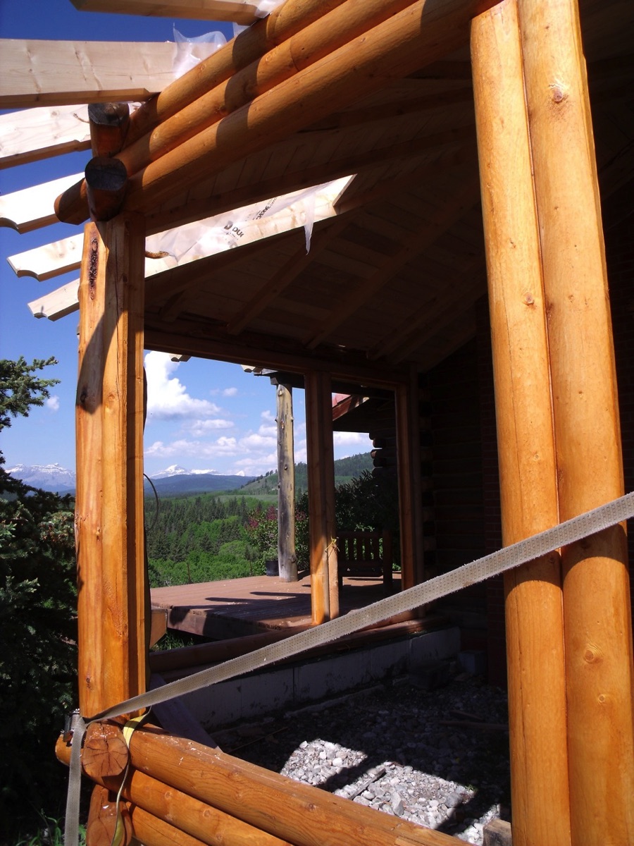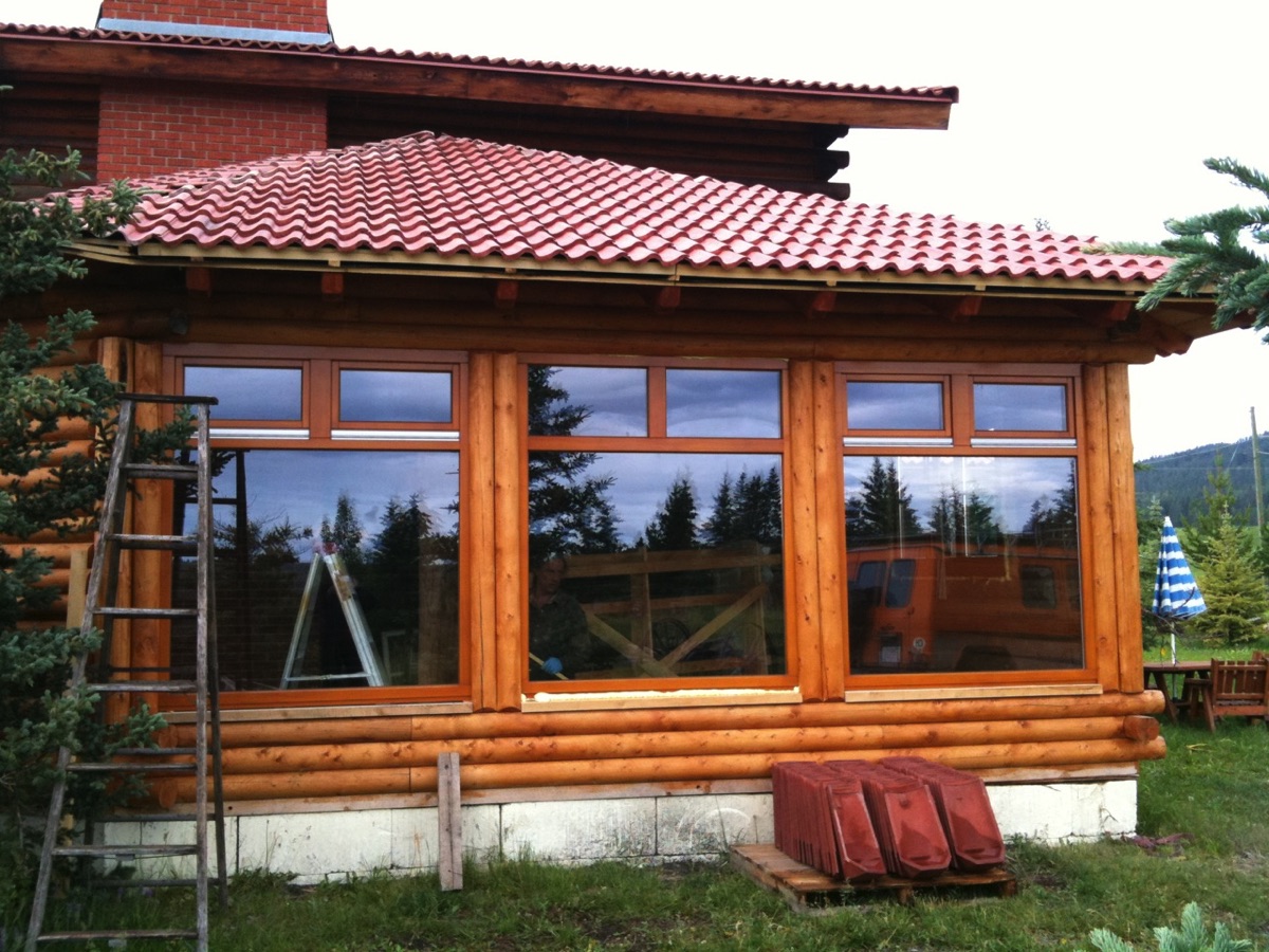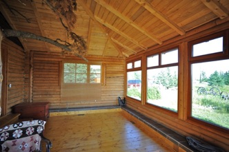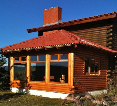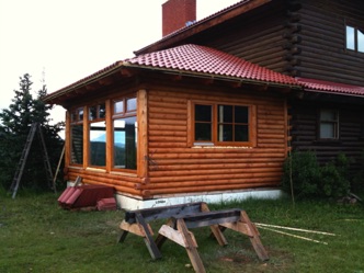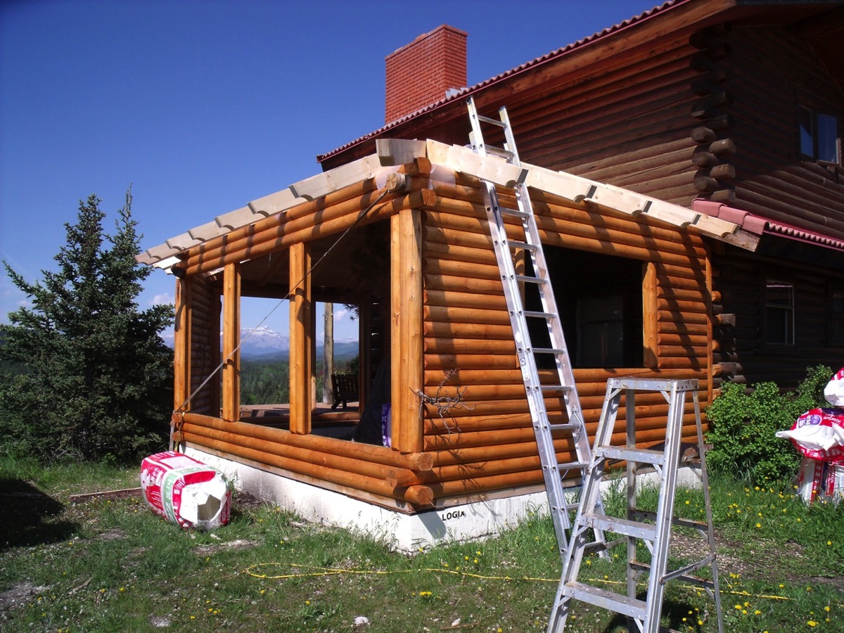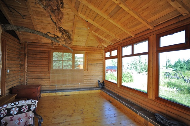 This sunroom is an addition to an older log home. Special care was taken to match the sunroom's appearance to the existing log house.