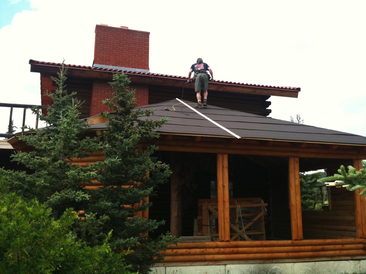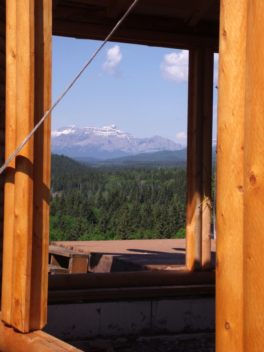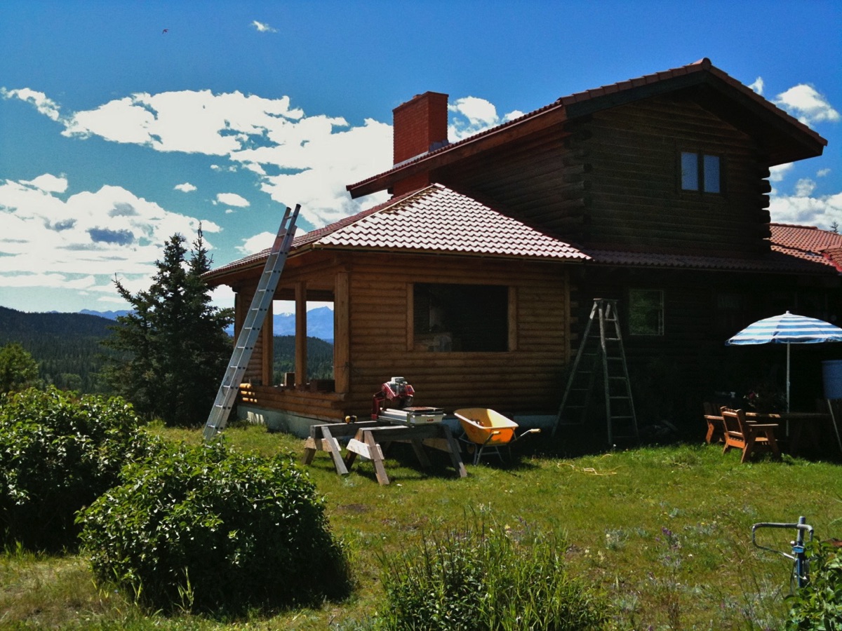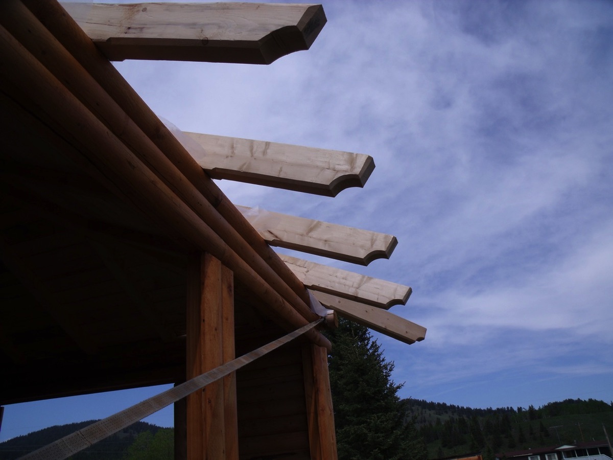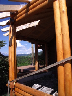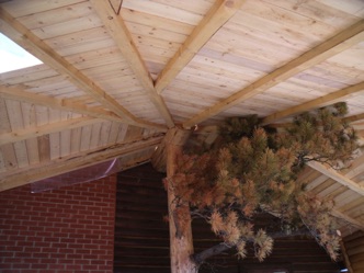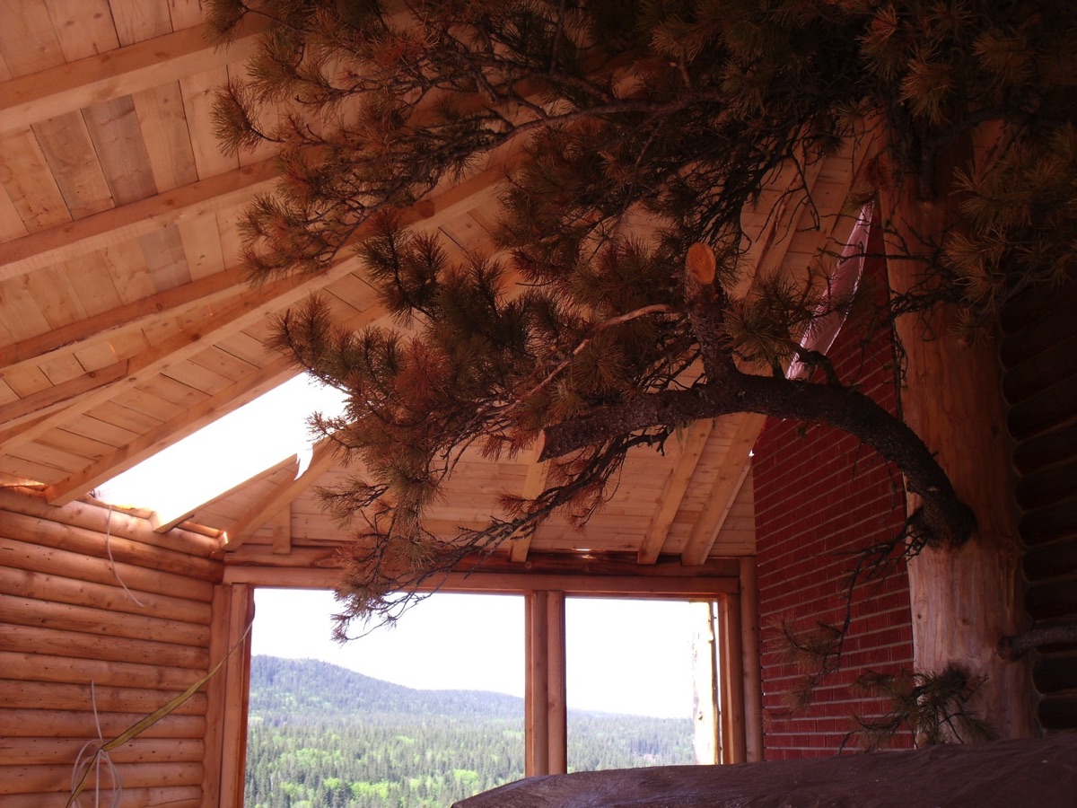 - hand-peeled pine tree with limbs as central feature and pillar for the roof structure